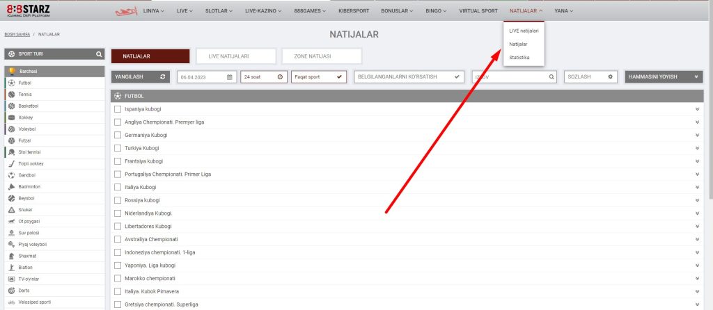 • Найдите нужное событие и тип ставки на 888STARZ.