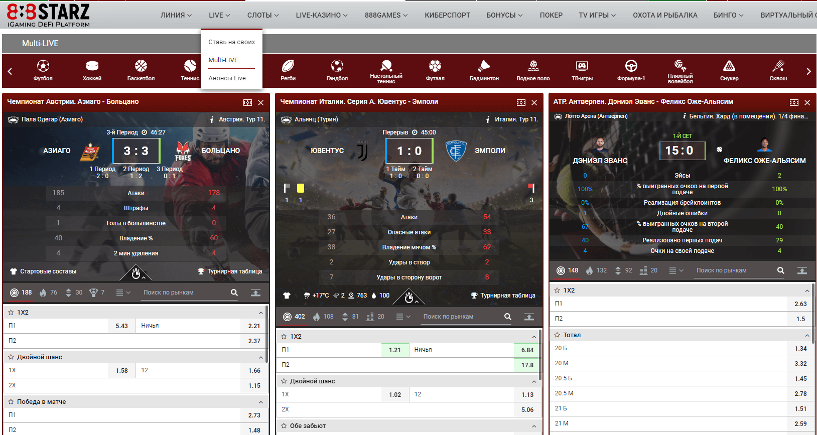Механизм работы мульти лайв ставки довольно прост. Игрок выбирает несколько событий, которые проходят в одно и то же время, и следит за их ходом через специальный интерфейс который предлагает букмекерская контора, например, 888STARZ. В реальном времени можно вносить изменения в свои ставки, реагируя на ключевые моменты каждого события. Это требует высокой концентрации и быстрой реакции, но также предоставляет уникальную возможность максимизировать потенциальную прибыль за счет быстрого принятия решений.